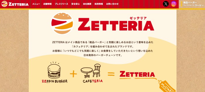 ゼッテリア(ZETTERIA)は、日本ので第3位だったハンバーガーチェーン「ロッテリア」の新名称です。